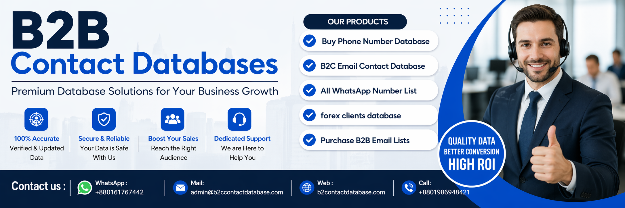 Premium B2B Contact Databases Center will provide you with a phone number list, a list of WhatsApp numbers, an email list and an industry database of the right people to buy your products. You will find your targeted people using our targeted database list. We provide data all over the world at low prices.