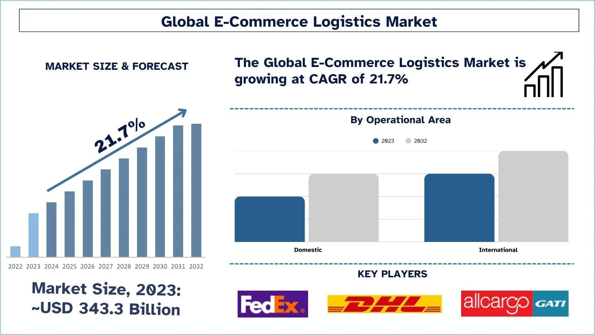 According to the UnivDatos, The E-Commerce Logistics Market was valued at USD 343.3 billion in 2023 and is expected to grow at a robust CAGR of around 21.7% during the forecast period (2024-2032). E-commerce has expanded rapidly in China, with China again emerging as the largest market in the world, with almost half the global share. The increased use of e-commerce, huge population growth rates, and the development of the transport infrastructure have led to the rapid growth of the e-commerce logistics market. Nowadays, innovative solutions based on advanced technologies are introduced by logistics leaders such as Cainiao, a subsidiary of Alibaba, JD Logistics, and SF Express.