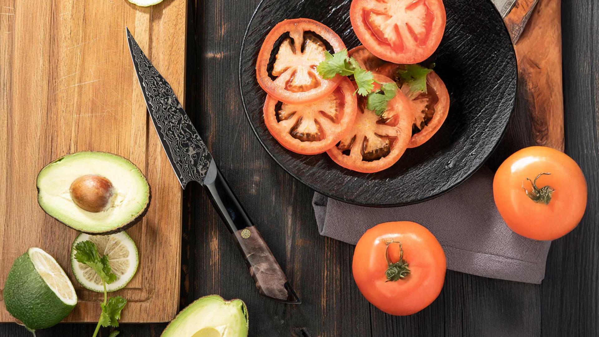 A Damascus Utility Blade is one of the most important tools in any kitchen. Its medium size and lightweight design make it ideal for countless everyday tasks where precision and control are key. You can use it for trimming meat, slicing fruit, chopping herbs, and even delicate decorative cuts.