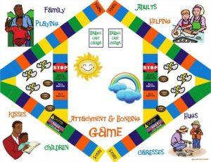 A board game distracts the children's minds easily, letting them talk about an experience calmly and in the middle of a game.