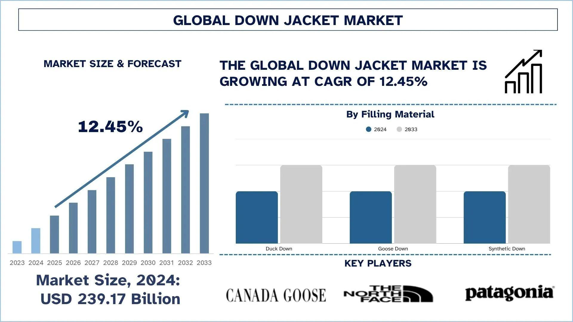 According to a new report by UnivDatos, the Down jacket Market is expected to reach USD billion in 2033 by growing at a CAGR of 12.45%. The global down jacket market is becoming more competitive, with both well-known brands and new competitors heavily investing in innovation. Manufacturers aim for ultra-light, compact, and weatherproof designs ideal for harsh outdoor environments. The use of smart textiles, such as fabrics that regulate temperature and coatings that repel water, boosts product performance. Companies are setting themselves apart through sustainability efforts, improved insulation methods, and luxury looks. New entrants in the Asia-Pacific region offer affordable yet high-quality options, challenging Western brands' market dominance. This rising competition is driving continuous innovation and creating a more dynamic, technology-oriented global market.
