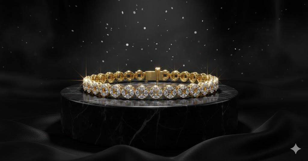 The hallmark of this bracelet lies in its bezel-set diamond tennis design. Unlike traditional prong settings, bezel-set diamonds are encased securely within polished metal, offering a sleek and modern appearance. This design not only enhances durability but also allows the diamonds to shine with a smooth, uninterrupted brilliance.