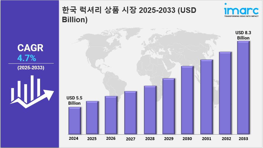 IMARC 그룹은 최근 "한국 명품 시장 규모, 점유율, 동향 및 유형, 유통 채널, 지역별 전망, 2025-2033"이라는 새로운 연구 보고서를 발표했으며, 시장 동인, 세분화, 성장 기회, 동향 및 경쟁 환경을 상세히 분석하여 현재와 미래의 시장 시나리오를 이해하고 있습니다.