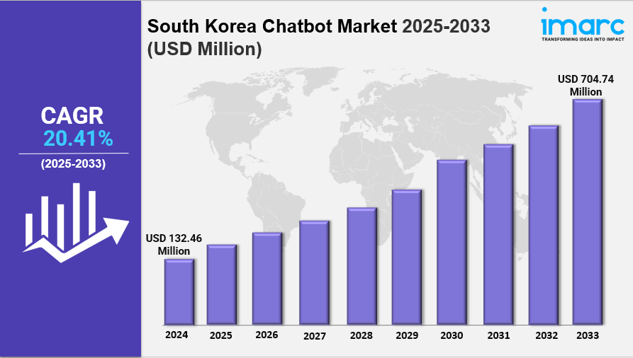 IMARC Group has recently released a new research study titled “South Korea Chatbot Market Size, Share, Trends and Forecast by Type, Product, Application, Organization Size, Vertical, and Region, 2025-2033, offers a detailed analysis of the market drivers, segmentation, growth opportunities, trends and competitive landscape to understand the current and future market scenarios.