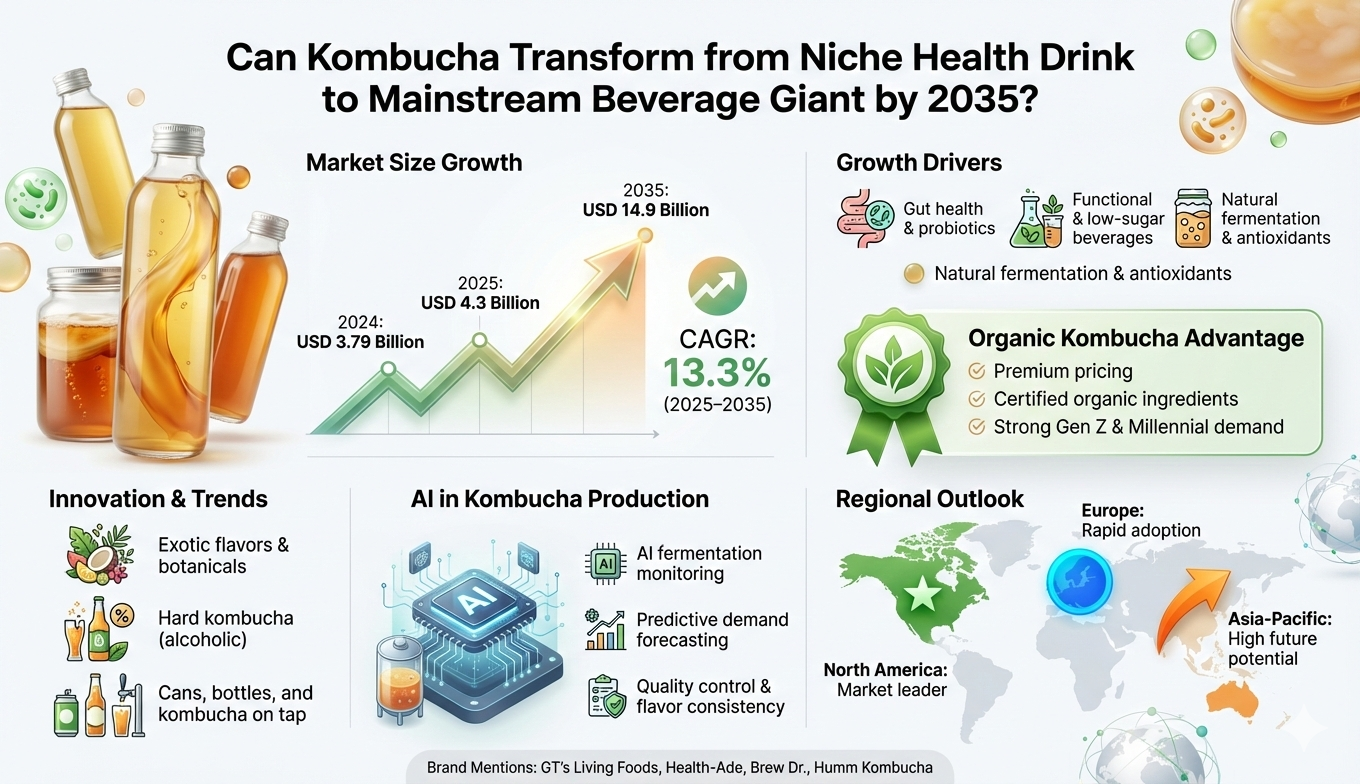 Artificial Intelligence is reshaping the Kombucha Market by strengthening competitive intelligence capabilities. AI tools analyze competitor pricing, promotional intensity, and consumer sentiment in real time. Automated production analytics also help brands maintain quality consistency at scale.