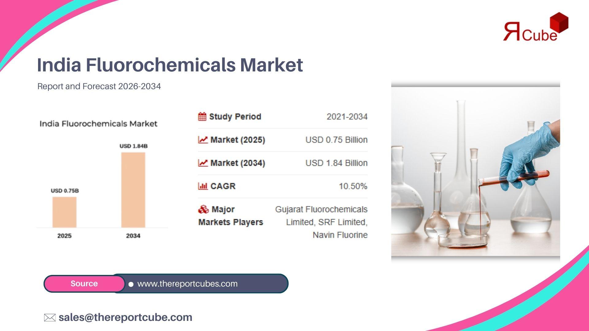 The India Fluorochemicals Market is projected to reach USD 1.84 Billion by 2034, expanding at a compound annual growth rate (CAGR) of 10.50% during the forecast period 2026-2034. According to the latest industry analysis published by The Report Cube, the market was valued at USD 0.75 Billion in 2025. The growth trajectory reflects evolving demand patterns, structural industry expansion, and measurable shifts in supply-demand balance across key regions.