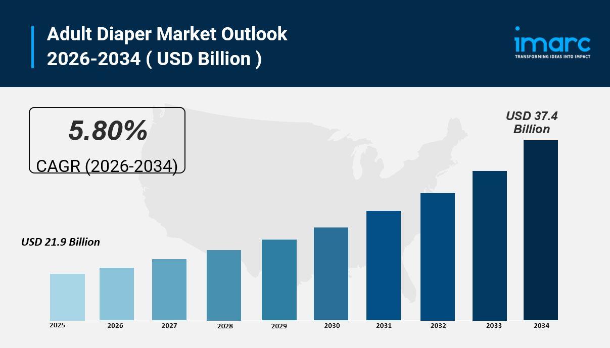 IMARC Group has recently released a new research study titled "Adult Diaper Market Size, Share, Trends and Forecast by Type, Distribution Channel, and Region, 2026-2034", offers a detailed analysis of the market drivers, segmentation, growth opportunities, trends and competitive landscape to understand the current and future market scenarios.