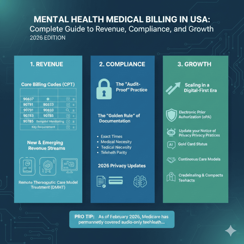 The demand for behavioral healthcare continues to rise across the United States. As more providers expand access to therapy, psychiatry, addiction recovery, and telehealth, the administrative side of practice management becomes increasingly complex. Accurate mental health billing, compliant coding, payer coordination, and credentialing are no longer optional tasks. They directly affect revenue, compliance, and patient satisfaction.