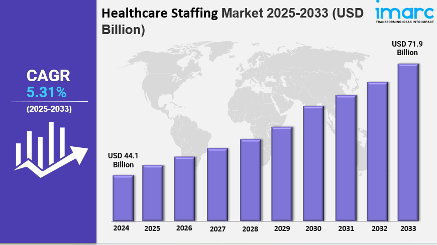 Global Healthcare Staffing Market Overview The global healthcare staffing market is on a robust growth trajectory, driven by an aging population, persistent shortages of healthcare professionals, the lasting impact of the COVID-19 pandemic, and evolving specialized care requirements. Valued at USD 44.1 Billion in 2024, the market is projected to reach USD 71.9 Billion by 2033, exhibiting a strong CAGR of 5.31% during 2025–2033. Growth is powered by rising healthcare demands, increasing reliance on flexible staffing models, technological advancements in workforce management, and growing adoption of telehealth and remote care solutions. Access In-Depth Market Intelligence — Download Your Free Sample Copy: https://www.imarcgroup.com/healthcare-staffing-market/requestsample Key Market Statistics at a Glance • Base Year: 2024 • Historical Years: 2019–2024 • Forecast Period: 2025–2033 • Market Size (2024): USD 44.1 Billion • Projected Size (2033): USD 71.9 Billion • Growth Rate: CAGR of 5.31% • Leading Region: North America (Largest market in 2024) Healthcare Staffing Market Growth Trends Aging Population and Increased Healthcare Demand With the growing aging population, there is a greater need for healthcare services due to age-related conditions and chronic illnesses. This leads to escalating demand for healthcare professionals, including physicians, nurses, and caregivers, to provide essential care and support. Consequently, healthcare organizations must continuously expand their workforce, resulting in sustained demand for healthcare staffing services. Ongoing Shortage of Healthcare Professionals As the demand for healthcare services continues to rise, there is a simultaneous shortage of qualified professionals, including nurses, physicians, and allied health workers. This shortage is fueled by retirements, career transitions, and geographic imbalances in the distribution of healthcare talent. To bridge this gap and ensure adequate staffing levels, healthcare organizations increasingly turn to specialized staffing agencies to fill temporary and permanent positions. Impact of the COVID-19 Pandemic The unprecedented demand for healthcare workers during the COVID-19 crisis created an urgent need for additional staffing resources. Hospitals, clinics, and healthcare facilities faced surges in patient volumes, requiring flexible staffing solutions to maintain operational continuity. The pandemic also underscored the importance of agile staffing models that can respond quickly to fluctuating demands and sudden workforce disruptions. Evolving Nature of Healthcare and Specialized Care Requirements The evolving nature of healthcare delivery, combined with technological advancements and growing demand for niche clinical expertise, has created a need for professionals with highly specialized skills. Healthcare staffing agencies play a critical role in sourcing these professionals to meet the specific requirements of hospitals, clinics, and long-term care facilities. Technological Advancements in Workforce Management The adoption of cloud-based technology platforms, telehealth solutions, and digital workforce management tools is transforming how healthcare staffing agencies recruit, place, and manage professionals. These innovations are improving efficiency, enhancing candidate matching, and expanding the geographic reach of staffing services. Get Customized Segmentation Intelligence — Speak Directly to Our Expert: https://www.imarcgroup.com/request?type=report&id=3909&flag=C Healthcare Staffing Industry Segmentation IMARC Group provides detailed segmentation analysis across service type categories, with forecasts at global, regional, and country levels for 2025–2033. Analysis by Service Type • Travel Nurse Staffing — Leading Segment Travel nurse staffing dominates the market by providing a flexible solution for healthcare facilities facing critical staff shortages. Travel nurses are temporary professionals willing to relocate for short-term assignments, ensuring adequate staffing levels and uninterrupted patient care, especially in high-demand regions and during peak seasons. • Per Diem Nurse Staffing Per diem nurse staffing offers on-demand and flexible staffing solutions, allowing healthcare facilities to supplement their existing workforce during peak periods, staff vacations, or unexpected absences. This model provides agility in managing fluctuating patient volumes while minimizing overtime costs and maintaining quality care. • Locum Tenens Staffing Locum tenens physicians provide short-term coverage for healthcare facilities facing physician shortages or leave-related gaps. Locum tenens staffing agencies connect qualified physicians with healthcare organizations, ensuring continuity of patient care and helping facilities meet ongoing service demands until permanent recruitment is completed. • Allied Healthcare Staffing Allied healthcare staffing encompasses a broad range of non-physician clinical professionals, including therapists, medical technicians, and diagnostic specialists. This segment is experiencing steady growth as healthcare organizations seek specialized allied health talent to support expanding clinical programs and services. Regional Spotlight: Where Is Growth Concentrated? North America — Market Leader North America dominates the global healthcare staffing market, driven by high demand for healthcare professionals, an aging population, advanced healthcare infrastructure, and significant healthcare expenditure. The United States, in particular, is the largest contributor to regional growth, supported by major staffing agencies, robust hospital networks, and persistent clinical workforce shortages. Europe — Universal Healthcare Systems Driving Demand In Europe, the healthcare staffing market is driven by aging demographics, growing healthcare demands, and cross-border mobility of healthcare professionals. The region's emphasis on quality univ