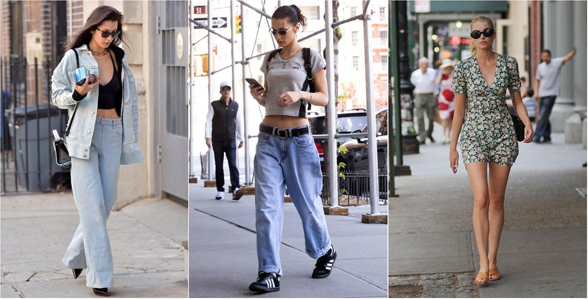 Photographed on her way to her first modeling job of the year in L.A yesterday, Hadid ticked all of those nostalgic style boxes: she wore a vintage caramel brown leather blazer, paired with a black turtleneck, straight leg black jeans, and pointed black ankle boots. For accessories, she wore a black and silver buckle belt, oval sunglasses, square gold earrings, a gold watch, and a thin black resin hairband.