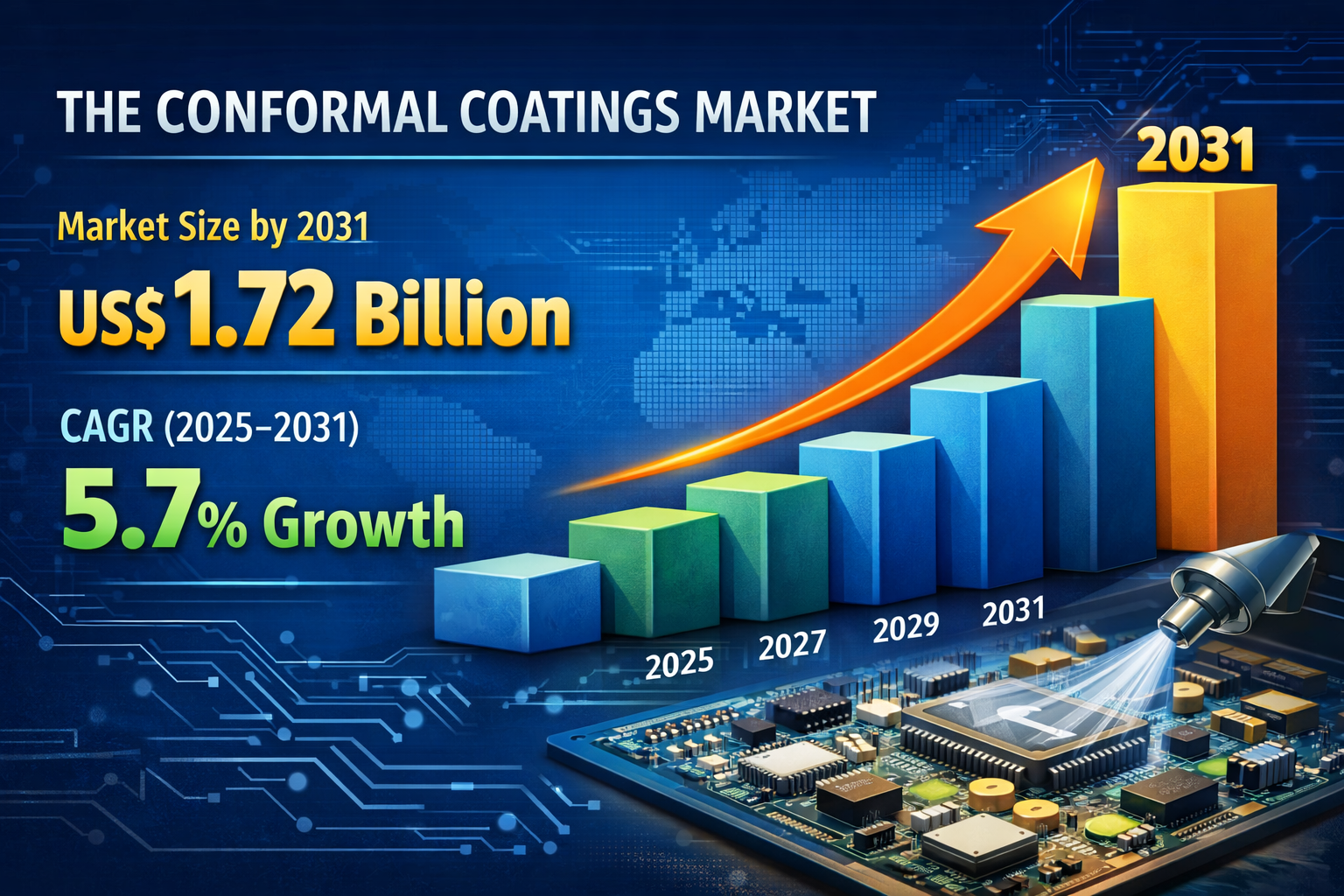 The Conformal Coatings Market Scope is broad and continues to evolve as technological advancements drive the adoption of sophisticated electronic systems in multiple industries. The market encompasses a variety of coating materials such as acrylic, silicone, epoxy, polyurethane, and parylene, each offering unique properties suited for specific applications. In addition, the scope includes multiple coating methods such as brushing, spraying, dipping, and automated robotic coating systems used in high-volume manufacturing environments. The Conformal Coatings Market size is expected to reach US$ 1.72 billion by 2031. The market is anticipated to register a CAGR of 5.7% during 2025–2031. The increasing integration of advanced electronics in electric vehicles, smart devices, and industrial automation systems has expanded the market’s scope significantly.