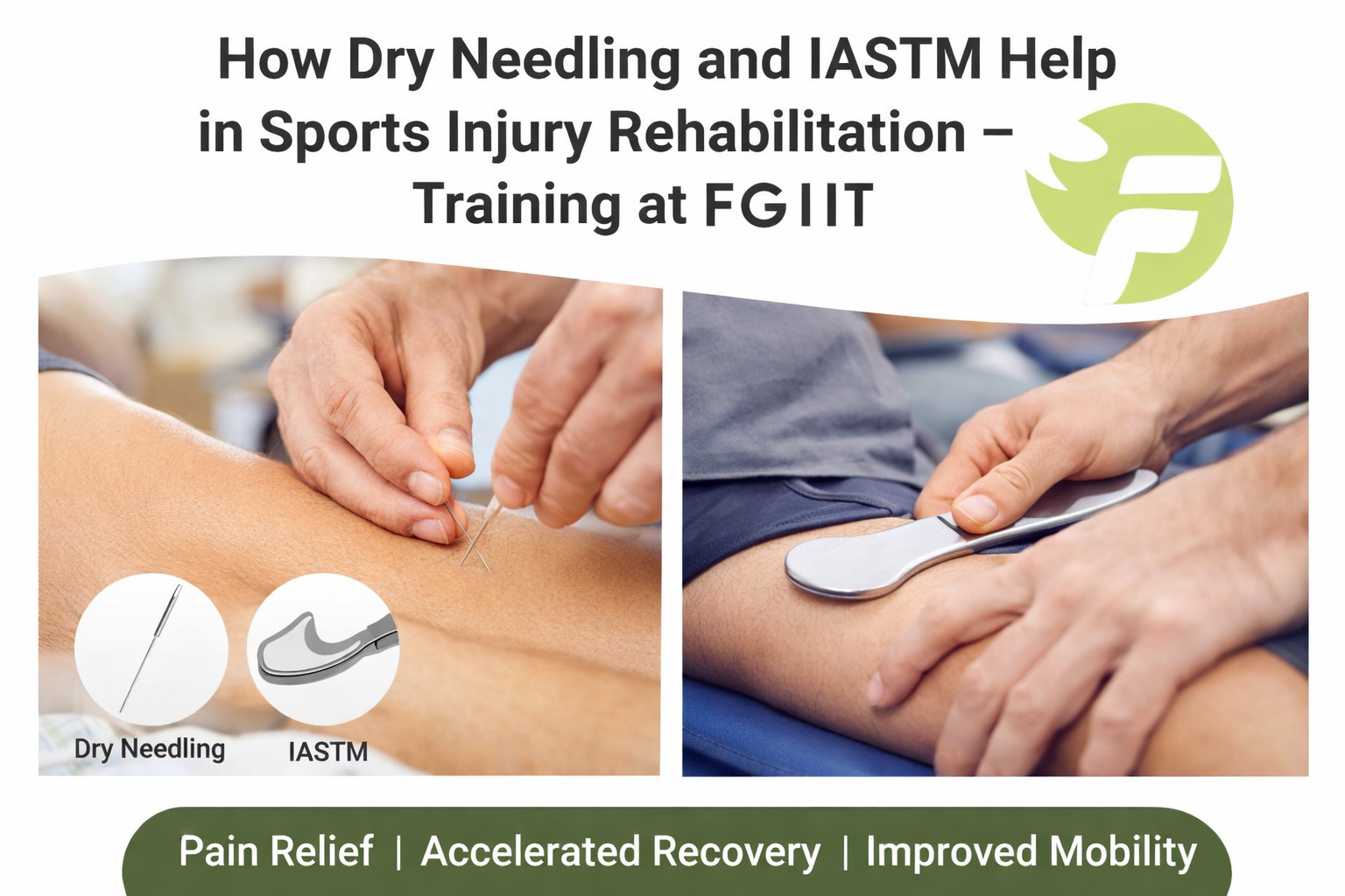 DRY NEEDLING and IASTM rehabilitation training itself is to prevent injury, improve health, and increase wealth in everybody's life. Today, in this new generation, sports rehabilitation training is the priority for people involved in the gym, sports, athletes, office, and at home. Personal training is an advanced training method to keep upgrading in a healthy life. Whether you are a fitness enthusiast, a gym professional, or someone looking to build a career helping others transform their lives, choosing the right training course is crucial. Many courses are available for sports rehabilitation in India. FGIIT has opened a wide range of courses in India for injury prevention. Dry needling and IASTM training course are more effective in sports, gym, club, society, and all rehabilitation.