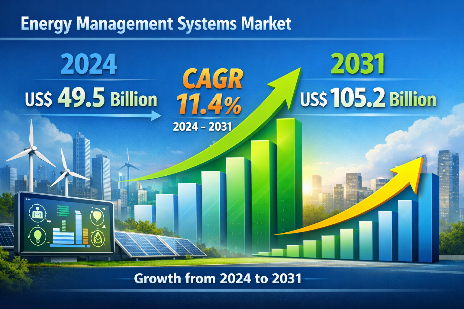 The Energy Management Systems Market Trend indicates a strong shift toward smart and automated energy solutions. Businesses are increasingly investing in EMS platforms to gain better visibility into energy consumption patterns and identify opportunities for efficiency improvements. The Energy Management Systems Market size is expected to reach US$ 105.2 billion by 2031 from US$ 49.5 billion in 2024. The market is estimated to record a CAGR of 11.4% during 2024–2031. Growing awareness of sustainability goals and carbon footprint reduction is pushing companies to implement energy monitoring technologies across commercial buildings, manufacturing facilities, and data centers. In addition, governments worldwide are introducing policies and incentives that encourage the adoption of energy-efficient technologies. As a result, the EMS market is evolving rapidly, with vendors focusing on advanced analytics, predictive maintenance, and cloud-based energy management solutions.