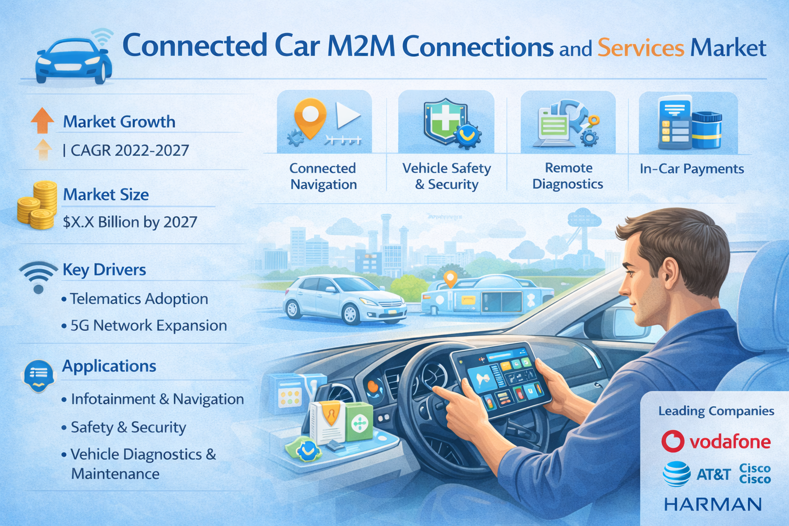 The Connected Car M2M Connections and Services Market Drivers is rapidly evolving as the automotive sector embraces digital transformation and intelligent mobility solutions. According to The Insight Partners, the market is projected to grow at a steady CAGR during the forecast period, driven by increasing adoption of connected vehicle technologies and rising demand for real-time communication between vehicles and digital ecosystems. The integration of advanced connectivity solutions is enabling automakers to enhance safety, efficiency, and overall driving experiences.