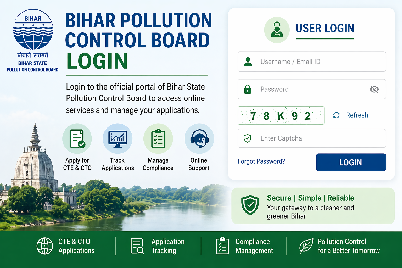 Access Bihar State Pollution Control Board login portal easily. Apply for CTE and CTO approvals, track applications, and manage compliance online. Start now.